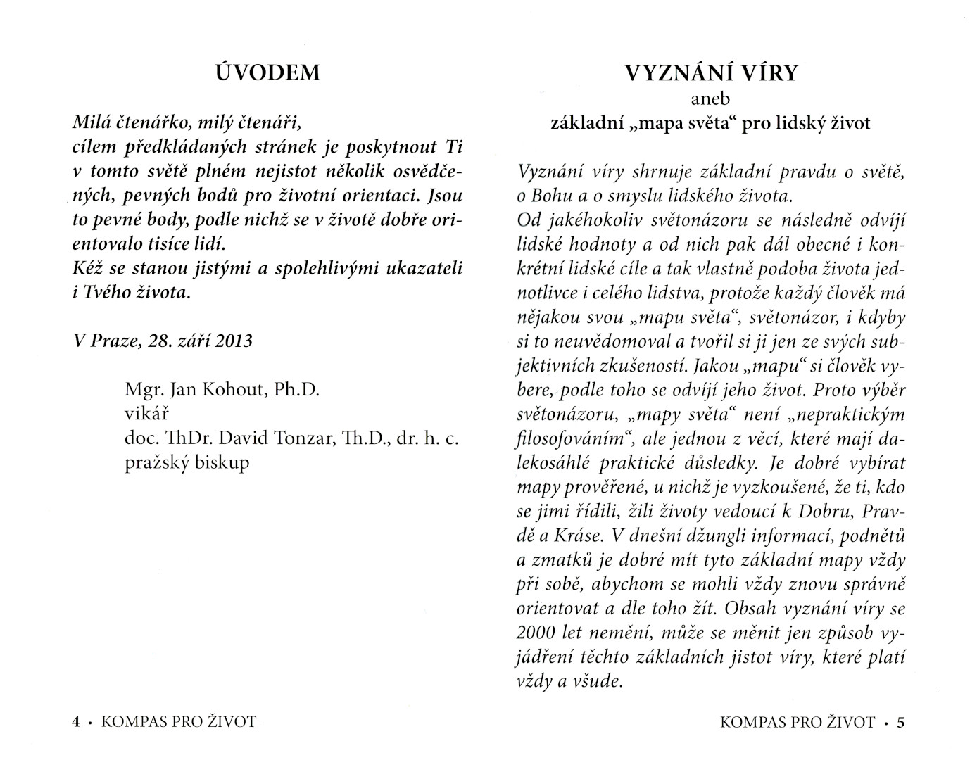 Kniha poskytuje několik osvědčených a pevných bodů pro životní orientaci (Vyznání víry, Boží přikázání, Modlitba páně – Otčenáš, Liturgie, Svátosti, Bible, Mistr Jan Hus). Vyznání víry shrnuje základní pravdu o světě, o Bohu a o smyslu lidského života. Obsah vyznání víry se 2000 let nemění, může se měnit jen způsob vyjádření těchto základních jistot víry, které platí vždy a všude. Kniha je vhodnou misijní příručkou pro nové návštěvníky kostela.